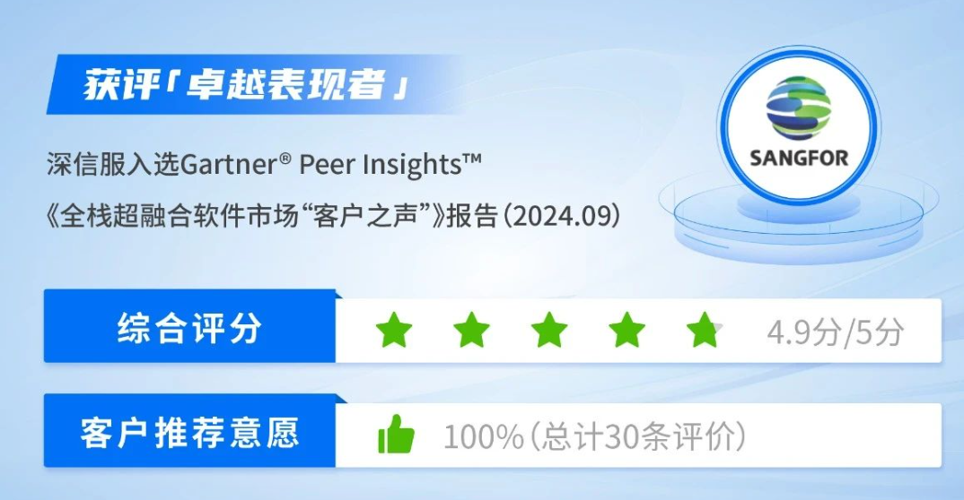 【成都深信服代理商】全球咨询分析机构Gartner®发布2024年《全栈超融合软件市场“客户之声”》报告(Gartner® Peer Insights™ Voice of the Customer for Full-Stack Hyperconverged Infrastructure Software, September 2024)